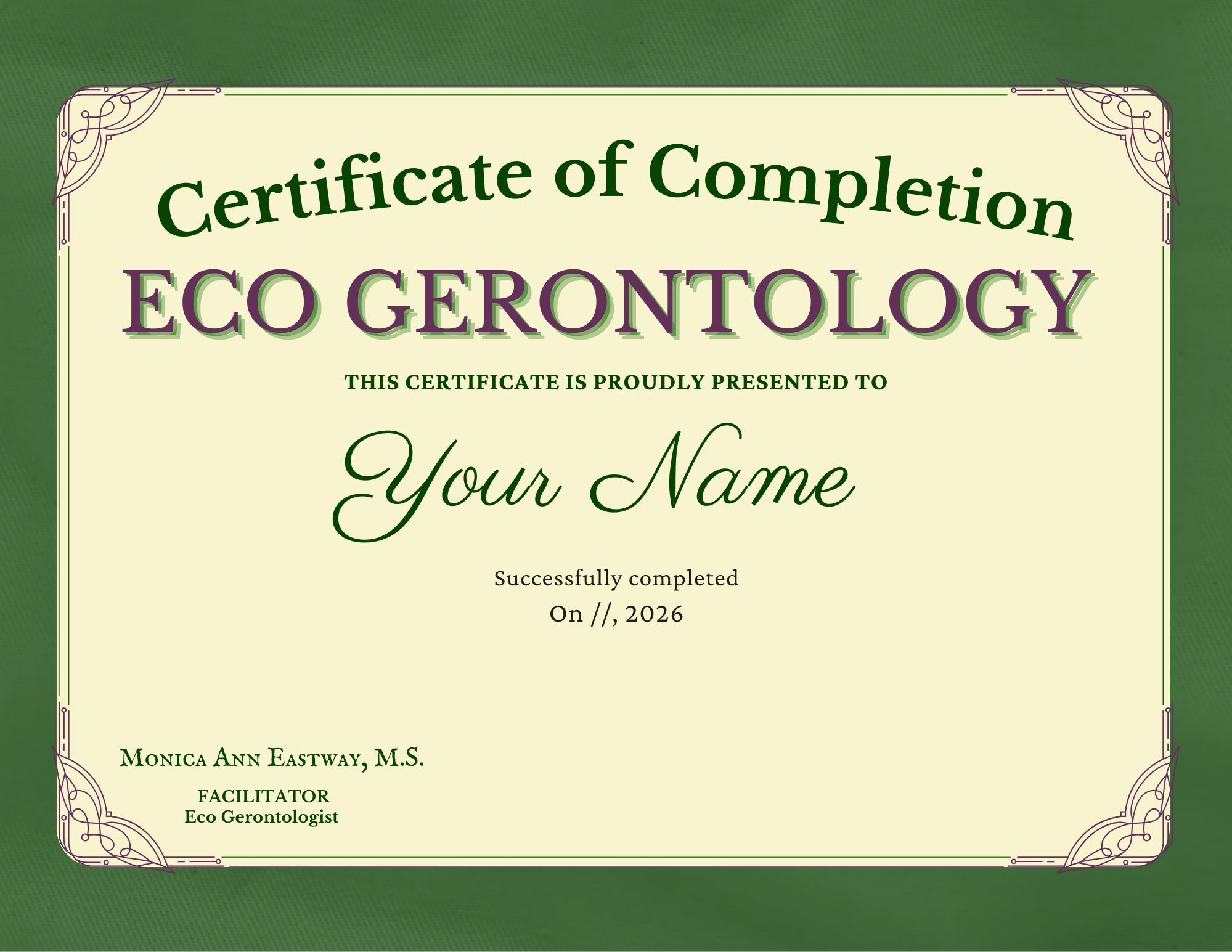 I am a recognized pioneer, educator, and nature-connected changemaker in the emerging field of Eco Gerontology, dedicated to advancing how we understand and support aging through a nature-connected lens.